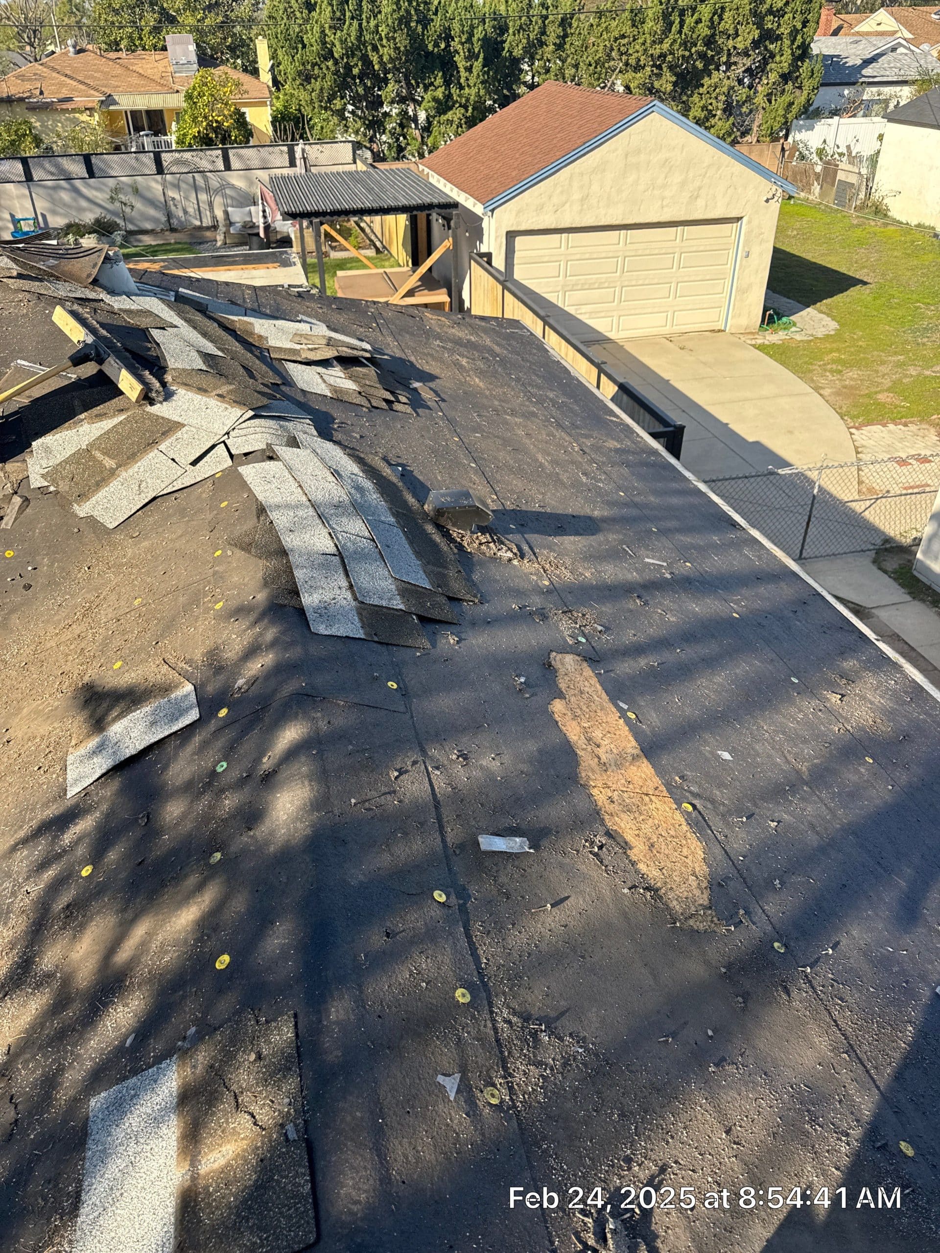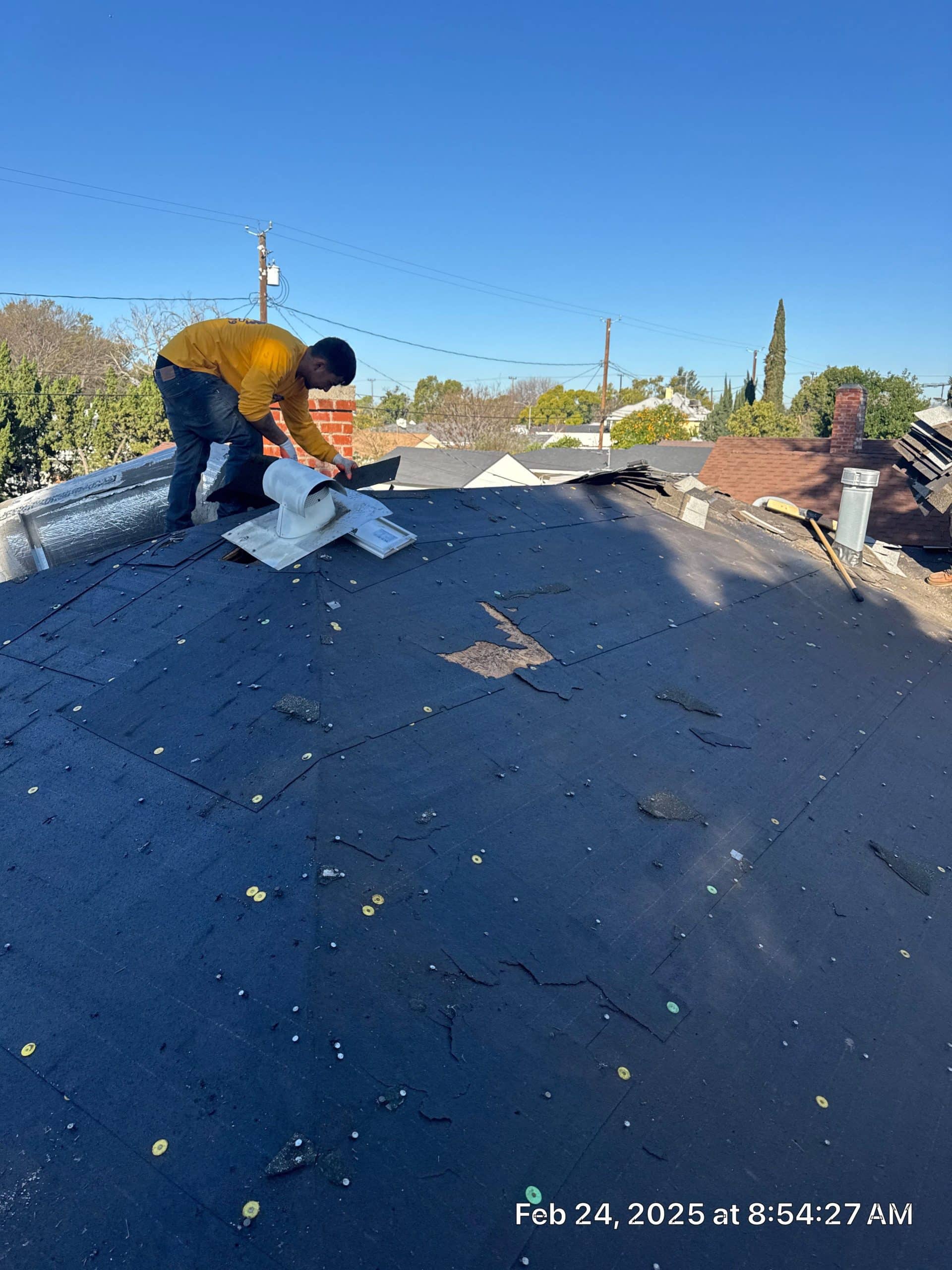 Tile roofs require expert handling during replacement. The team at Roof Repairs CA carefully removed the old red clay tiles while preserving any that could be reused. This meticulous process ensured that the underlayment and roof decking were not damaged, allowing for a smooth and stable foundation for the new roof installation.
