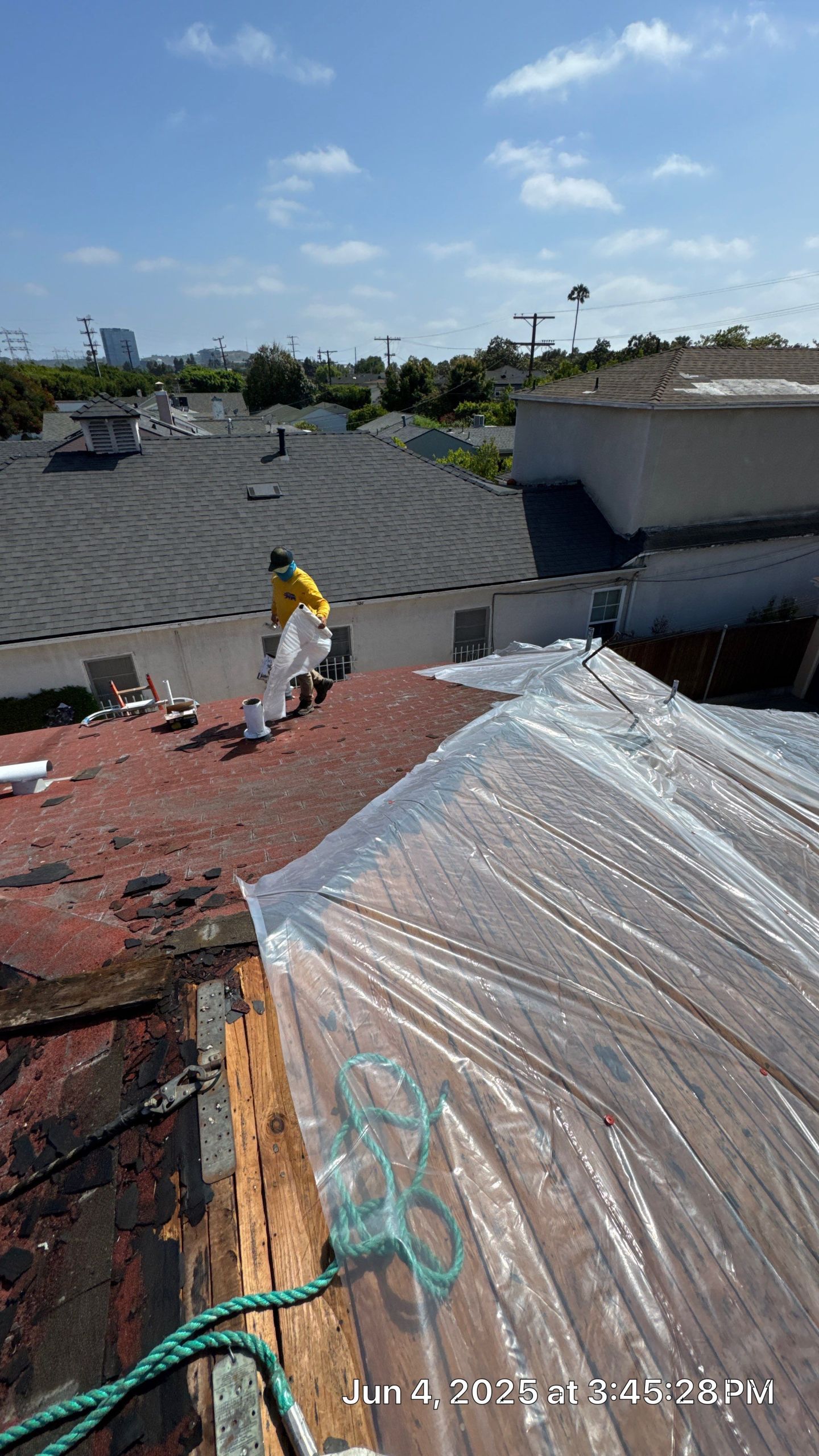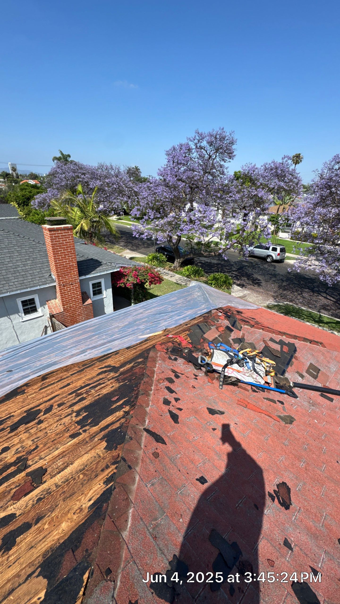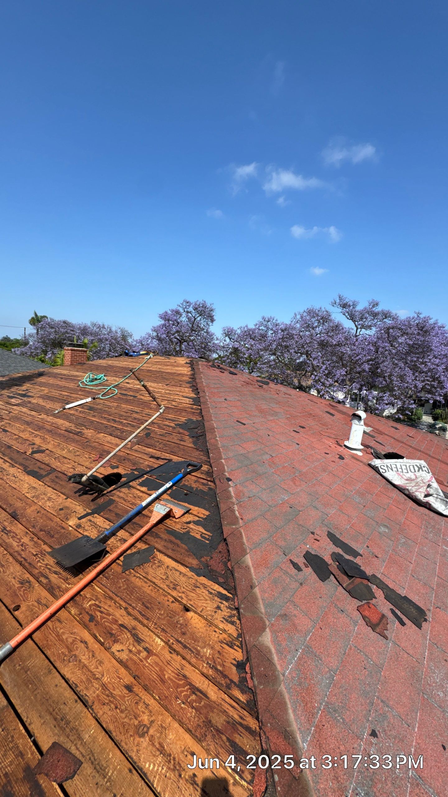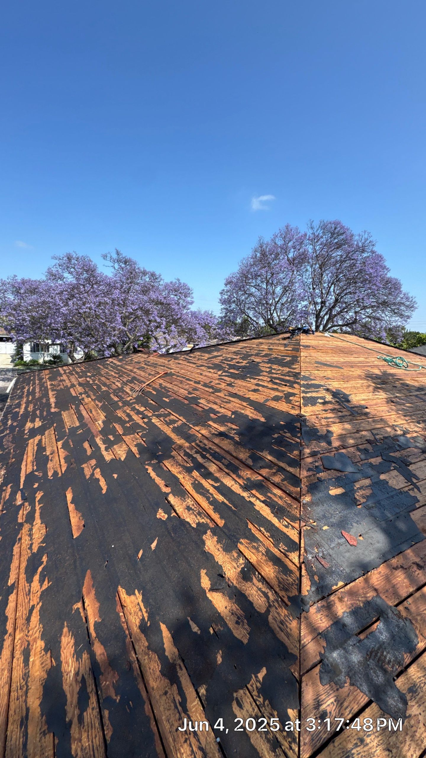 On June 4, 2025, Roof Repairs CA initiated a critical roofing project at 1825 S Ogden Dr in Los Angeles, CA. The existing roof showed severe degradation, both on the surface and underneath. During our initial tear-off, we discovered that many sections of the original wood decking had suffered from prolonged water exposure, leading to dry rot, softness, and structural compromise.