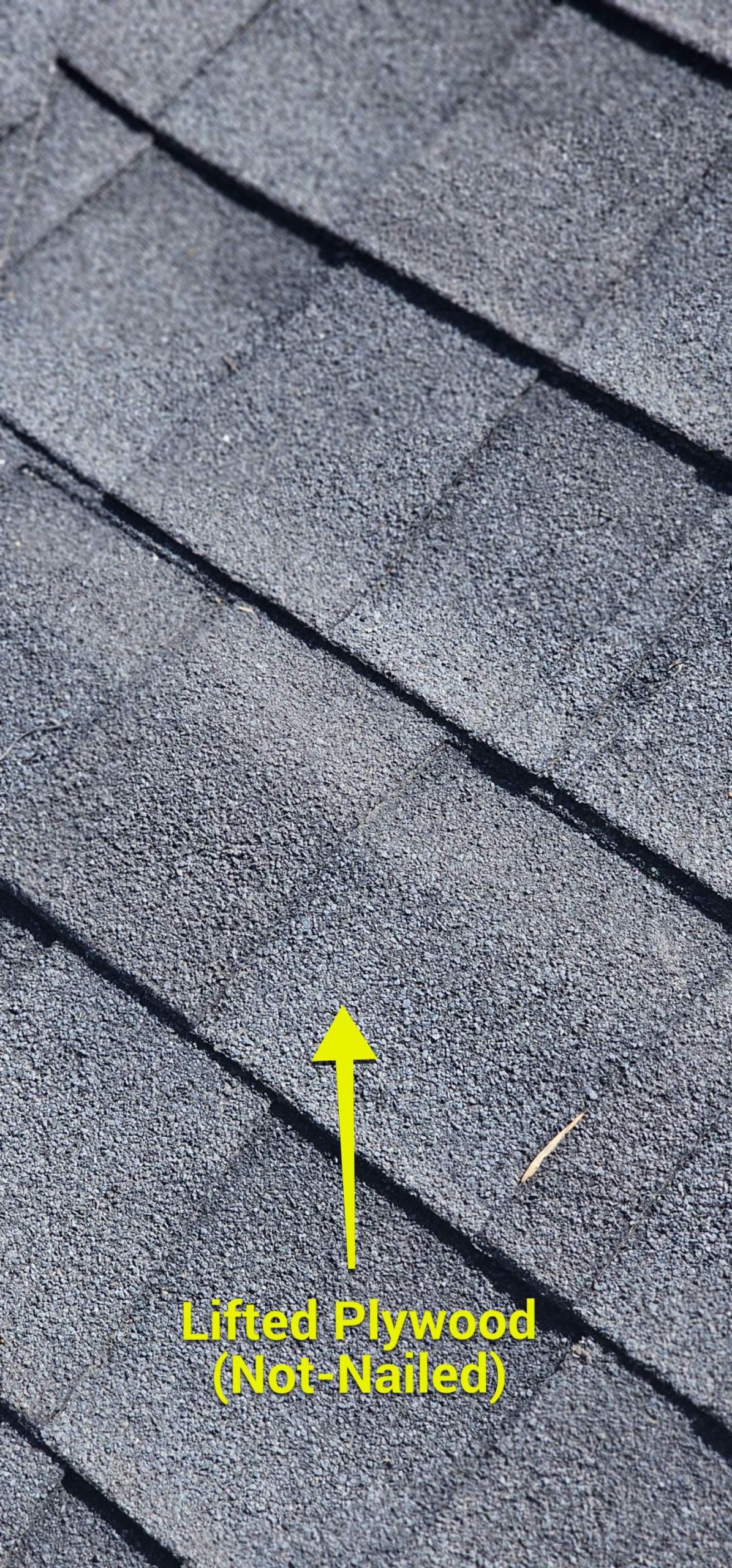 Identified lifted plywood not properly nailed