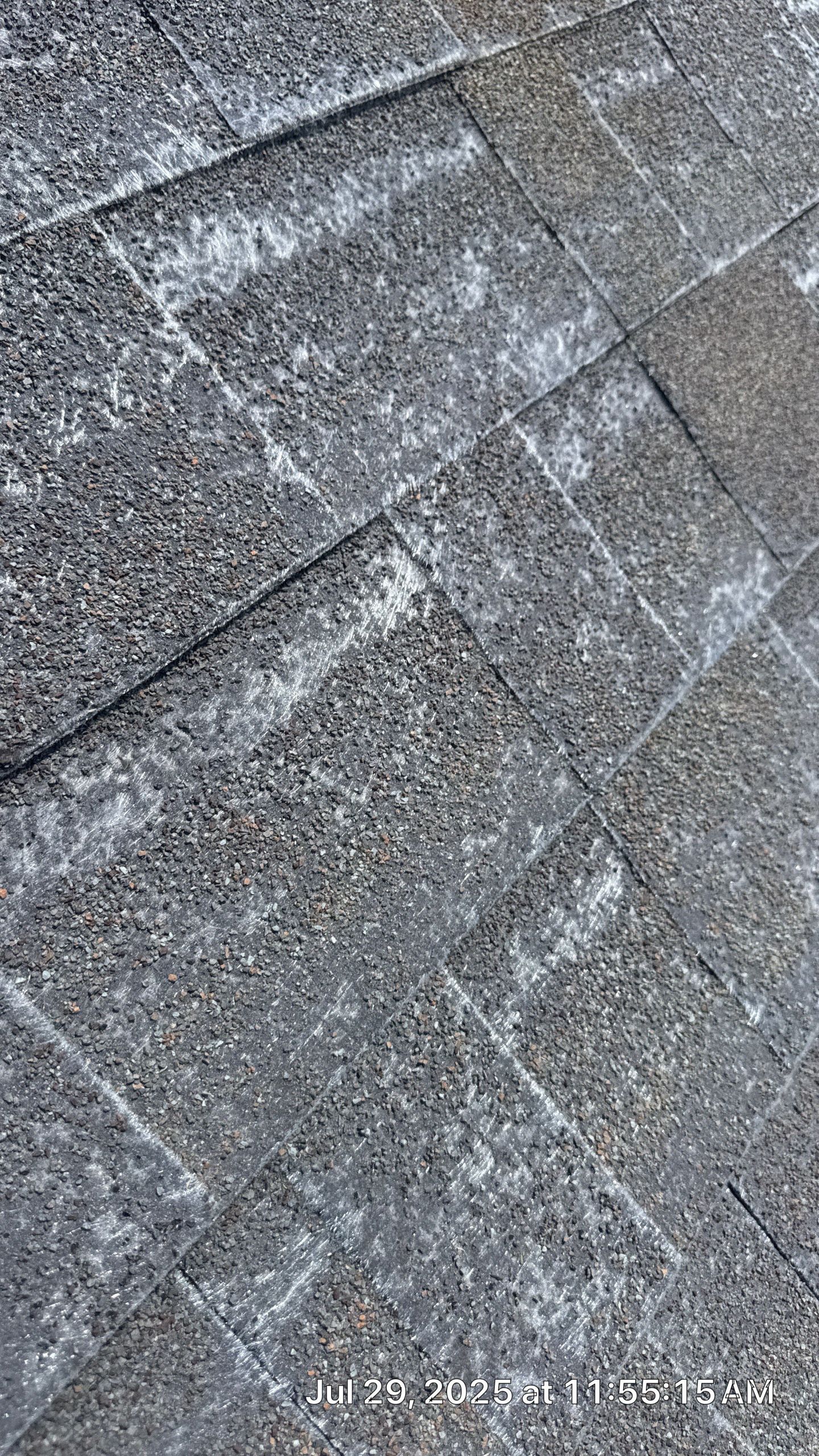 We began by removing the existing shingle layers and inspecting the roof structure. While the decking was mostly intact, several areas required cleaning and fastener reinforcement to ensure a smooth foundation. Once prepped, we installed a full layer of synthetic underlayment across the surface for waterproof protection beneath the shingles.