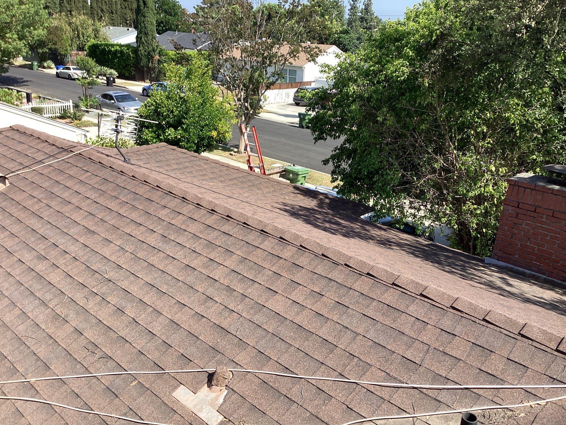 On July 12, 2025, Roof Repairs CA completed a comprehensive shingle roof maintenance project at 16931 Marlin Pl, Los Angeles, CA 91406. The roof was showing signs of wear due to prolonged exposure to sun and weather, with specific vulnerabilities around the chimney and roof penetrations.